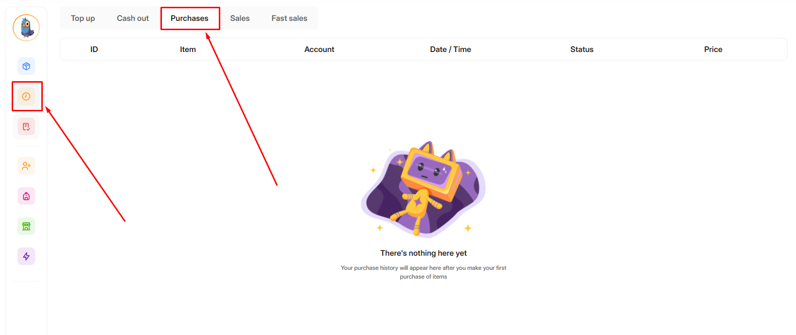 How can I view my topup and purchase history?