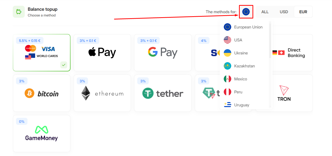 Dompet/kartu negara mana yang bisa saya gunakan untuk mengisi saldo?