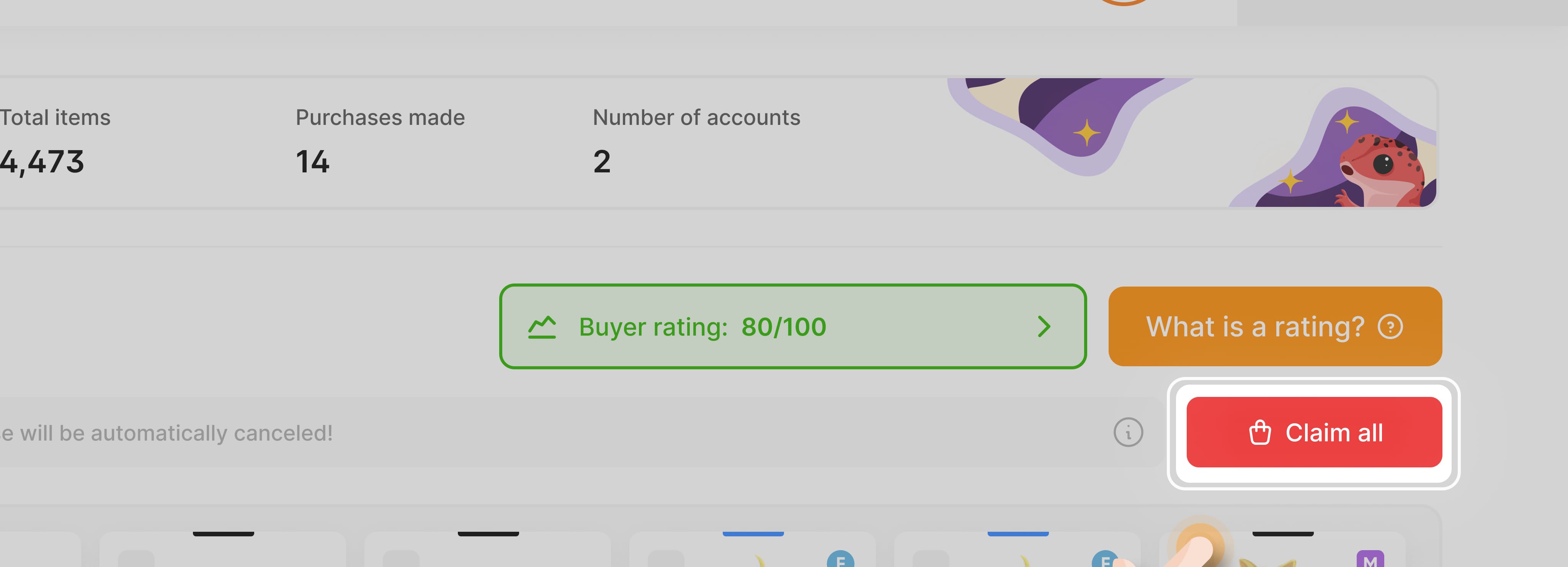 Maaari mong kanselahin ang pagbili kung may nangyaring error sa paglipat ng item sa game account (tingnan ang artikulo «May naganap na error sa pagbili. Ano ang dapat kong gawin?»). Pansinin: kung ang error ay nangyari dahil sa iyong kasalanan, ang transaksyon ay itinuturing na hindi matagumpay, at maaaring bumaba ang iyong rating bilang bumibili.