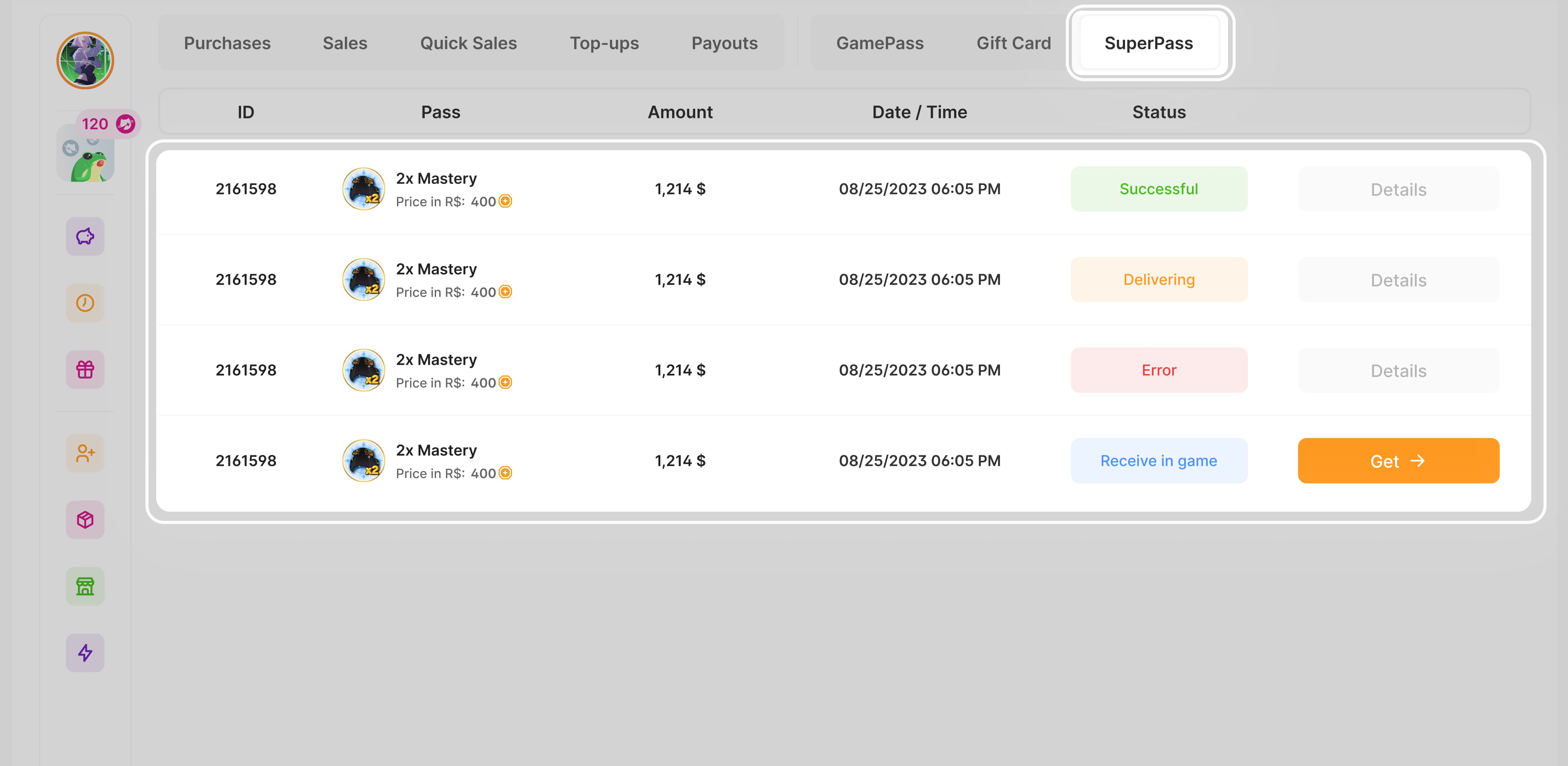 Ang paraang "GamePass" — ay ang pamilyar na paraan ng pagbili ng R$ sa aming website. Ang paraang ito ang pinaka-sulit, ngunit mas matagal ang pagcredit ng R$ kumpara sa ibang paraan.