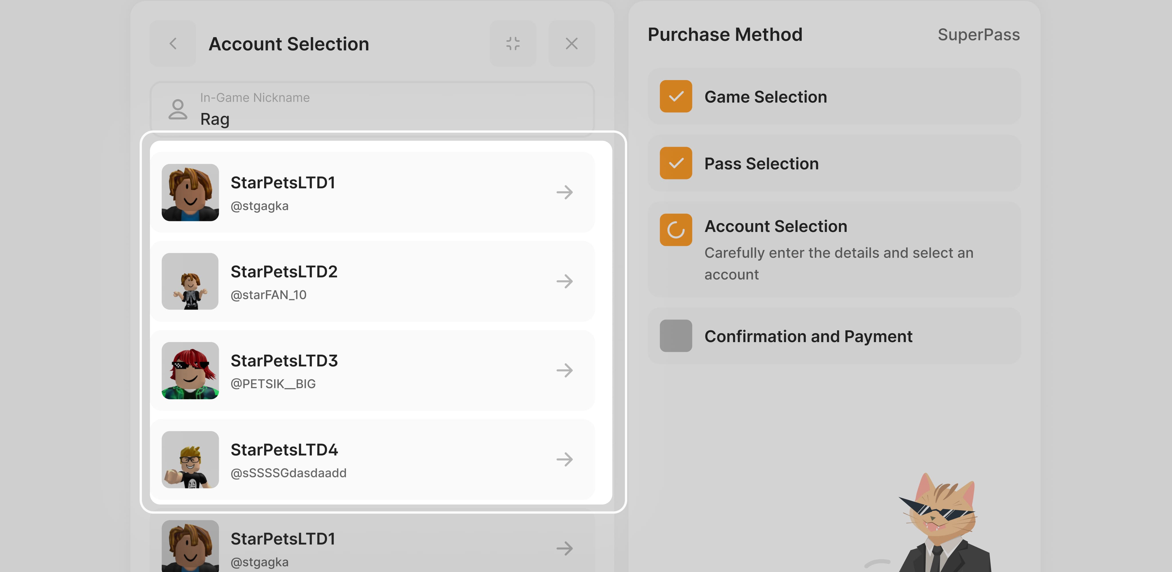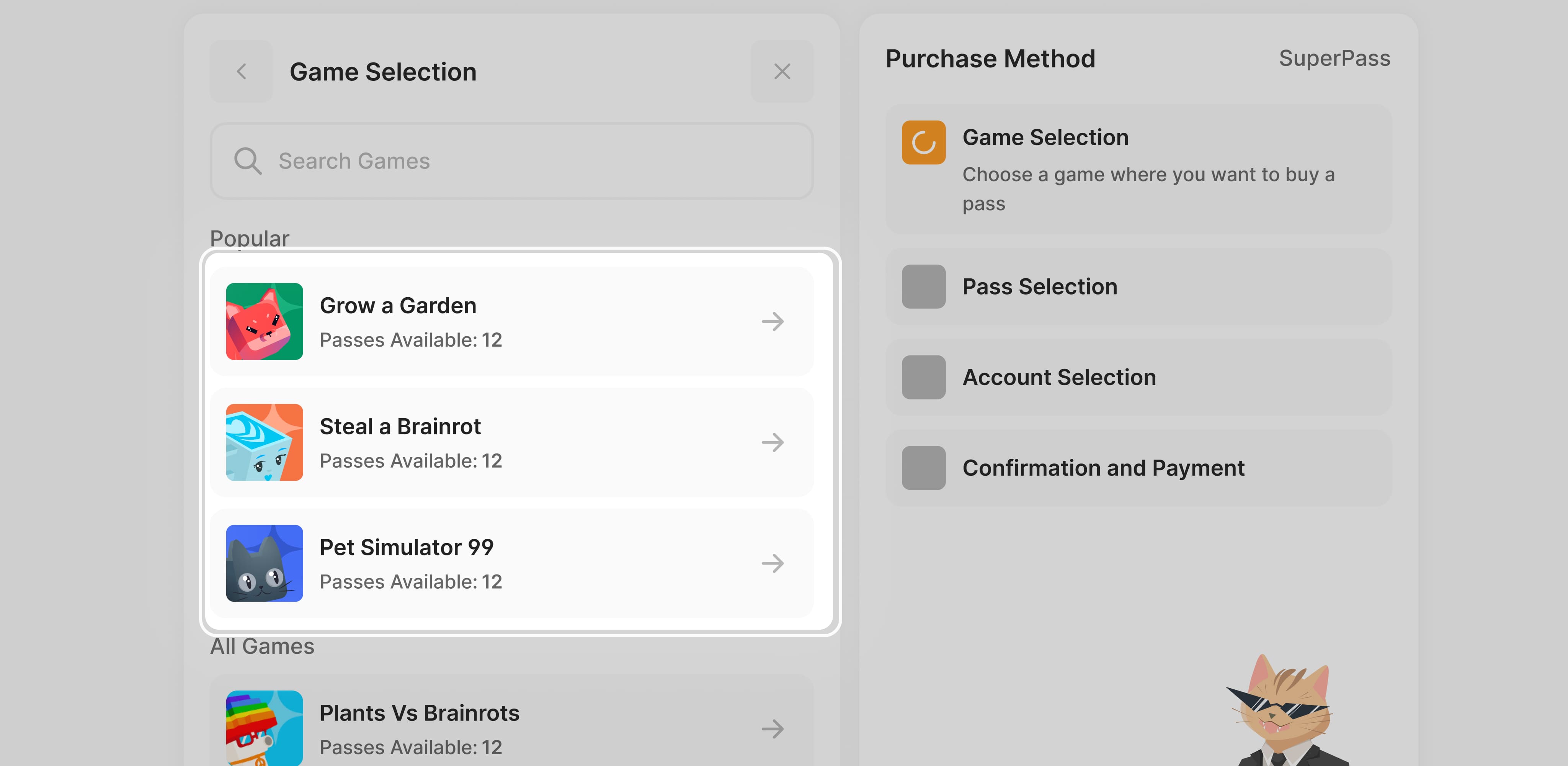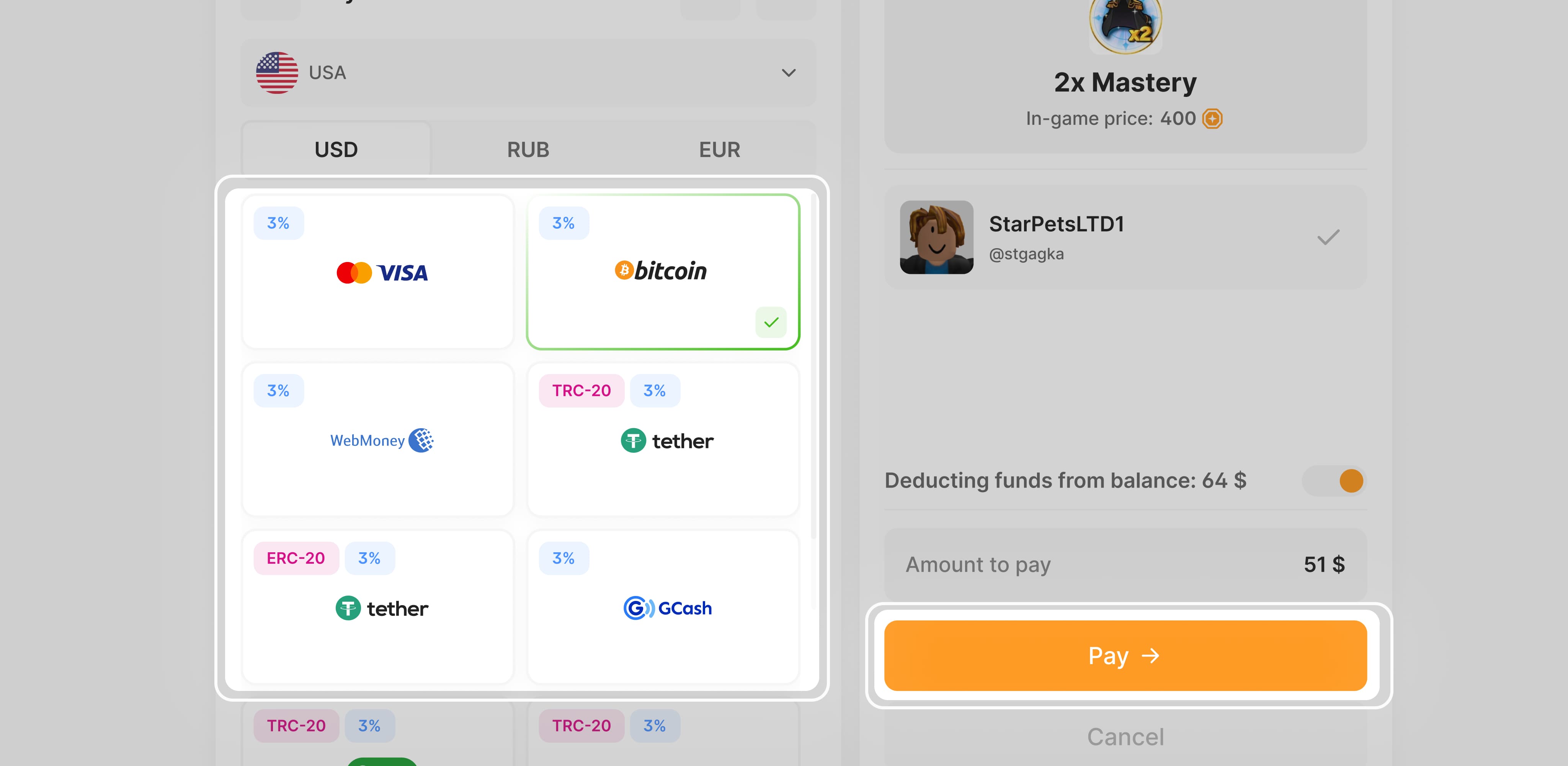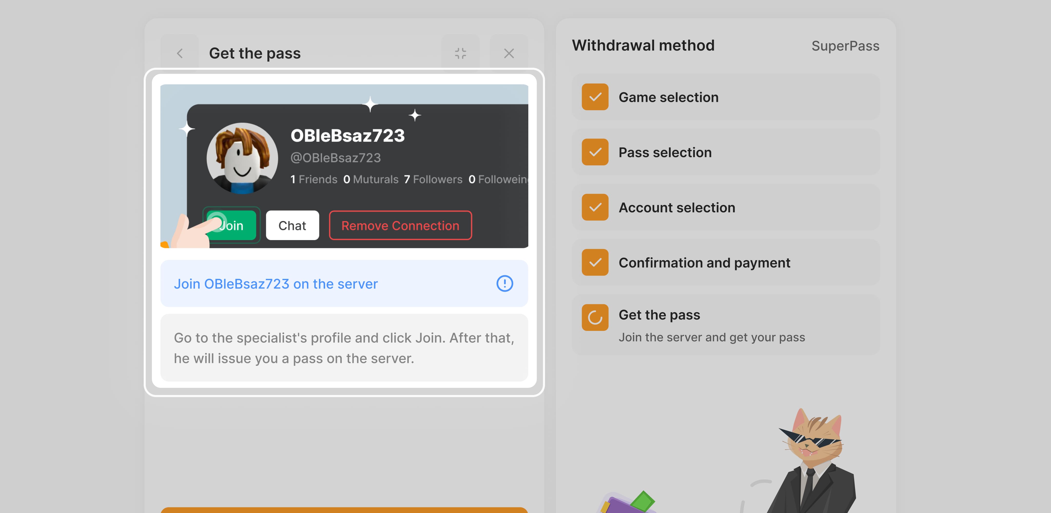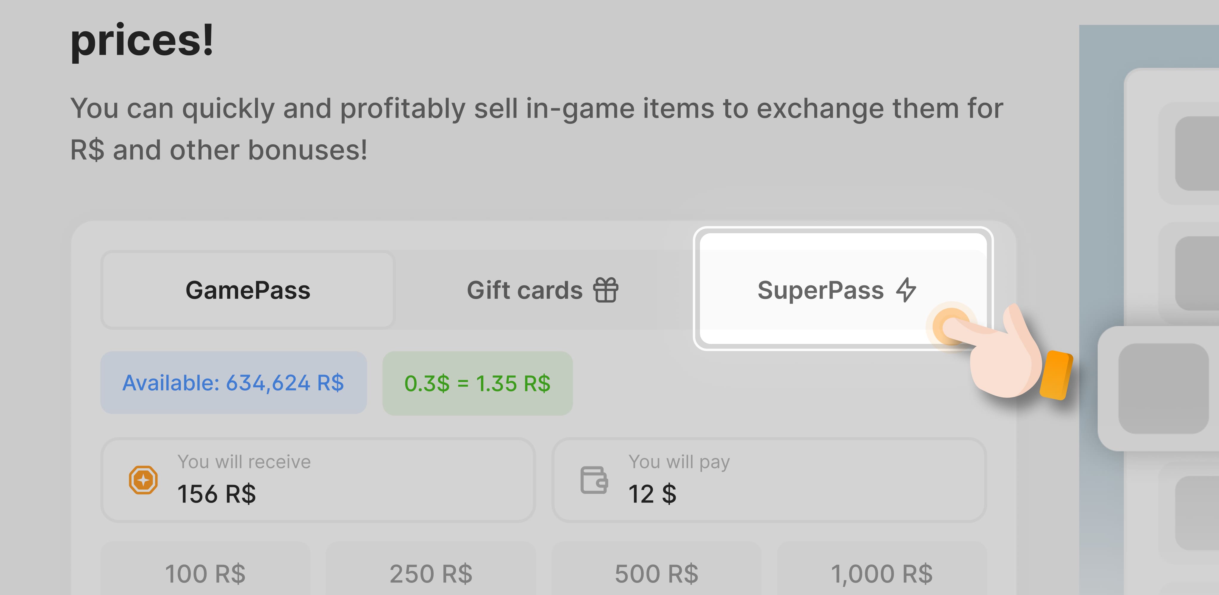 Para bumili ng R$ gamit ang paraang "GamePass" sa aming website, kailangan mong gawin ang mga sumusunod: