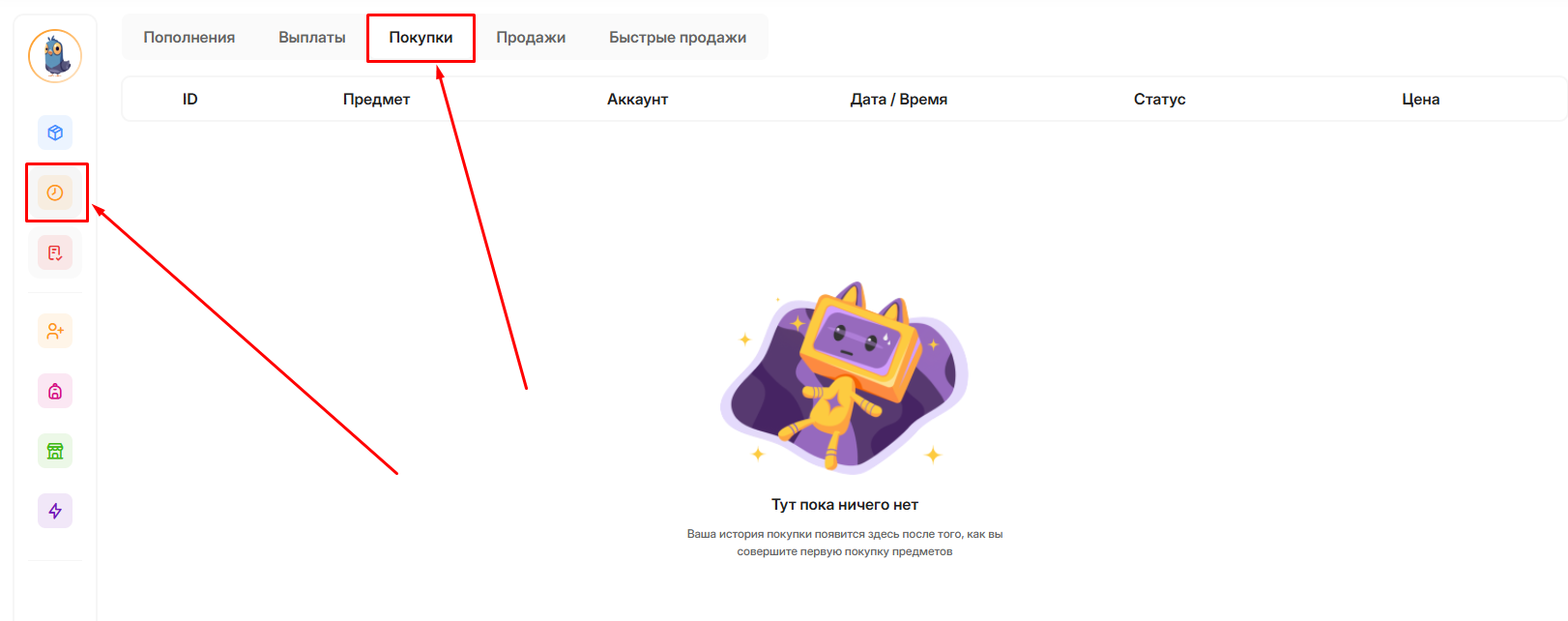 Как посмотреть историю пополнений и покупок?
