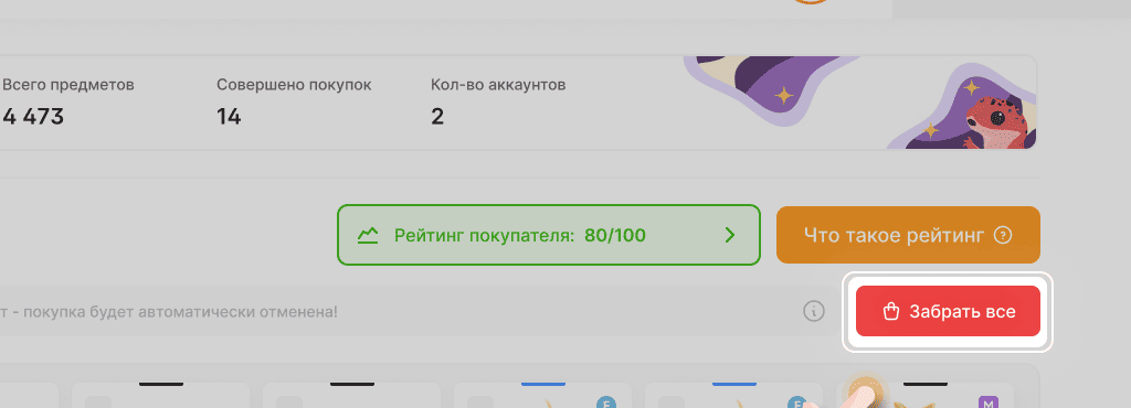 Все купленные предметы после оплаты попадают на вкладку профиля "Купленные предметы", после чего у вас есть ровно 1 час, чтобы их вывести. Для того чтобы передать купленные предметы на свой аккаунт в игре, вам нужно выбрать те предметы, которые хотите вывести, и нажать на кнопку "Забрать". После этого введите свой никнейм в игре и выберите свой аккаунт, далее действуйте по инструкции на экране.