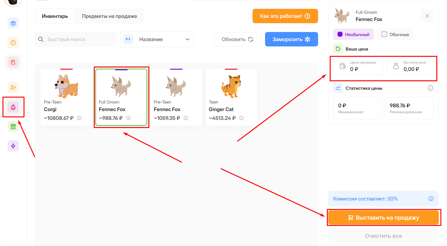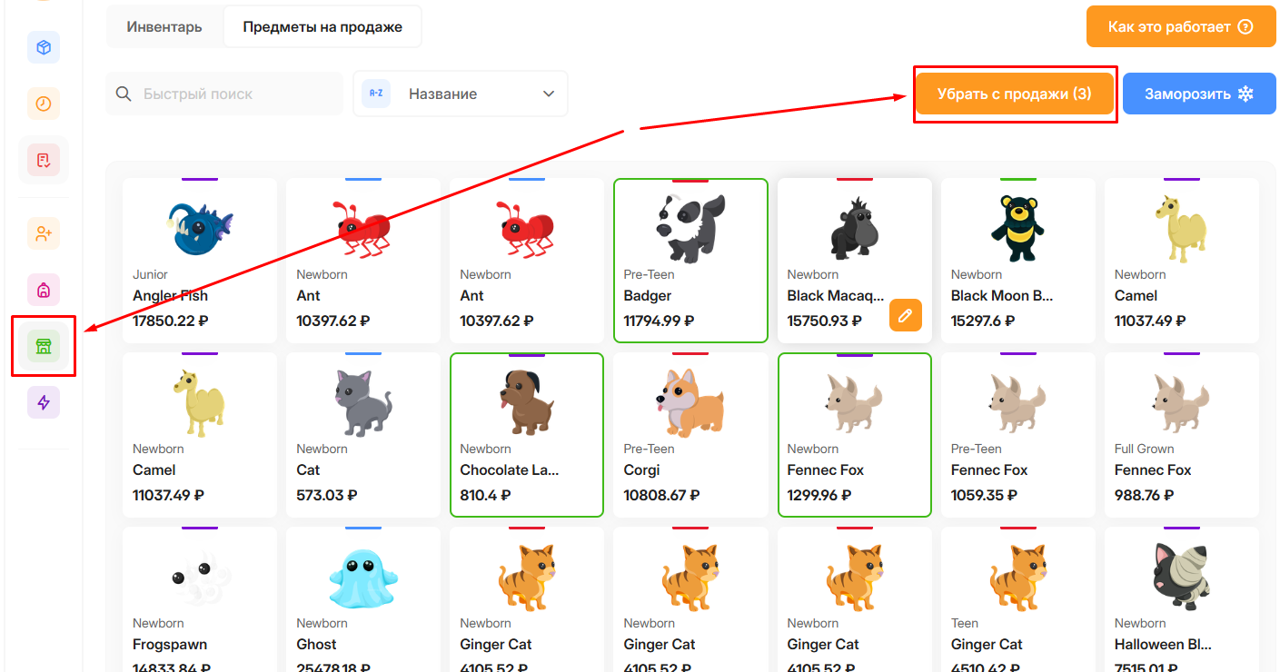 Как выставить предметы на продажу?